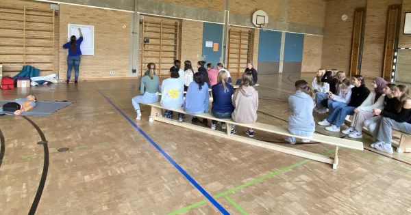 In insgesamt 4 Sessions wurden die Schülerinnen vor allem über Erste-Hilfe-Maßnahmen im Schulalltag aufgeklärt. Im Mittelpunkt standen dabei die Versorgung von Wunden und verstauchten Gelenken, das Erkennen und die Behandlung allergischer Reaktionen, aber auch lebensrettende Maßnahmen bei akuten Erkrankungssituationen, wie z.B. Herzinfarkt oder Schlaganfall. Neben den theoretischen Grundlagen wurde auch besonders viel Wert auf die Vermittlung von Praxiswissen gelernt. In diversen Übungseinheiten lernten die Nachwuchssanitäterinnen, wie man schnell, richtig und mit wenigen Handgriffen Erste Hilfe leisten kann. Damit einher ging die Stärkung des Selbstvertrauens, dass man in Notsituationen Hilfsbereitschaft zeigen und Verantwortung für seine Mitschülerinnen übernehmen kann. Mein Dank gilt Frau Laura Honndorf, Jugendleiterin beim ASB, für die empathische und kenntnisreiche Vermittlung der Lehrgangsinhalte.