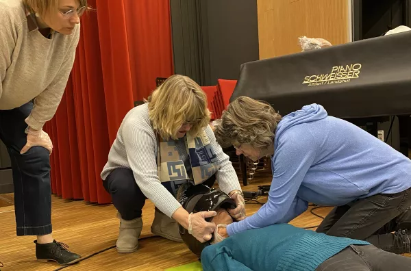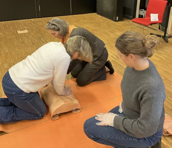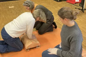 Das Know-how rettender Erste-Hilfe-Maßnahmen auffrischen konnten weitere 15 Lehrkräfte des MJS während einer zweitägigen Fortbildung unter der fachkundigen Leitung von Caroline Rauscher, die auch unsere Schulsanitäter coacht.