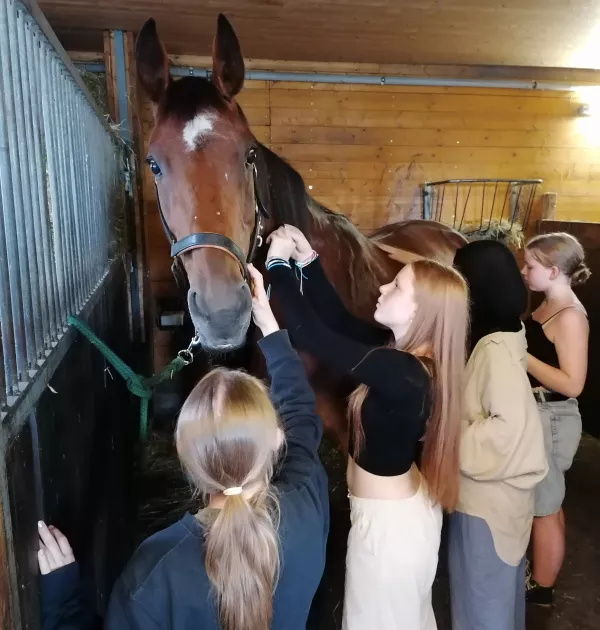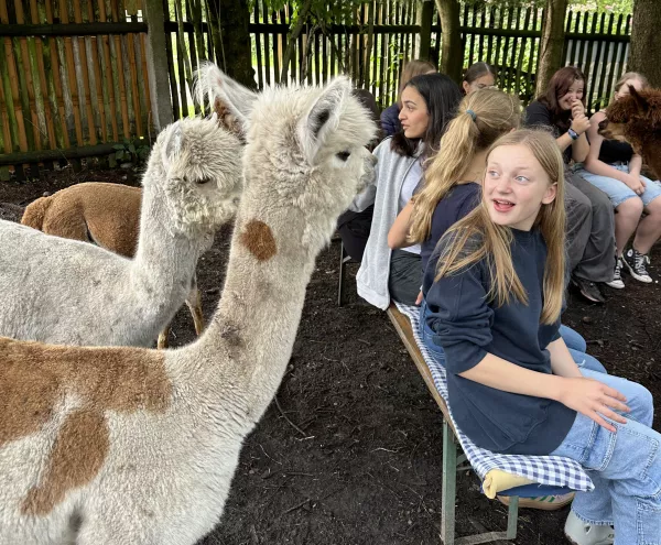 Begleitet von den Lehrerinnen Frau Gärtner und Frau Spieler machten sich 20 aufgeregte Schülerinnen auf den Weg, um einen Tag in der Natur und in der Gesellschaft von Alpakas und Pferden zu verbringen.