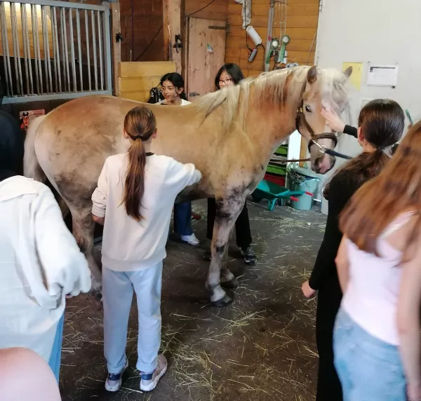Ein besonderes Highlight war der Wettbewerb, bei dem die Schülerinnen in Gruppen aufgeteilt wurden und das Gehege der Alpakas und der Pferde ausmisten sollten. Die Gruppe, die am meisten Mist sammelte, wurde mit erfrischenden Colamixgetränken belohnt. Dieser Wettbewerb sorgte für viel Spaß und Teamgeist.