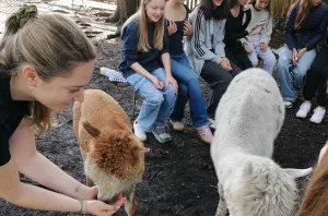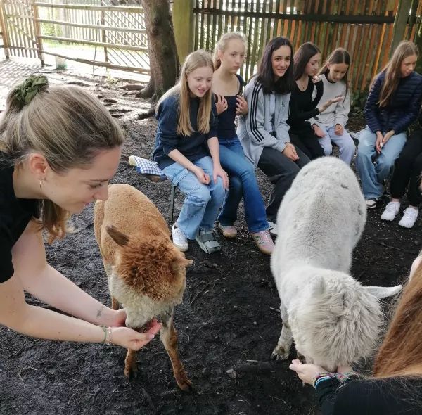 Der Tag auf dem Hof war abwechslungsreich und lehrreich. Zunächst konnten die Schülerinnen die Alpakas bestaunen und sie sogar füttern. Besonders mutige Schülerinnen durften bei der Hufpflege helfen und erfuhren dabei viel über die Pflege und den Umgang mit diesen faszinierenden Tieren.