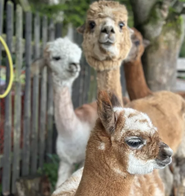 Der Tag begann mit einer U-Bahn- und Busfahrt in den Münchner Nord-Osten. Nach der Ankunft ging es noch etwa 20 Minuten zu Fuß weiter, bis die Gruppe schließlich den Alpakahof erreichte. Die Schülerinnen waren sofort begeistert von den flauschigen Alpakas, die sie dort erwarteten.