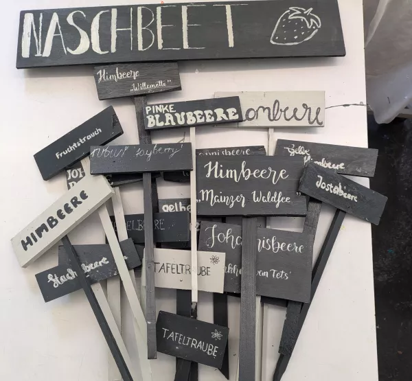 Während der Projekttage haben Schülerinnen unter der Leitung von Frau Welz bunte Schilder für das Beeren-Naschbeet im Rosengarten gebaut. Es wurde fleißig gesägt und gepinselt, sodass nun jeder genau weiß, welche Beeren im Beet zu finden sind. Die dekorativen Schilder verleihen dem Garten zudem eine schöne Optik.