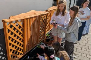 Die alten Pflanzkästen aus dem Internatsinnenhof wurden wieder auf Vordermann gebracht, wobei die Schülerinnen ihre handwerklichen Fähigkeiten mit Hammer und Holztacker weiterentwickeln konnten. Die kleinen Tomaten, Paprika und Gurken, die gemeinsam gepflanzt wurden, tragen nicht nur zu einer schöneren Umgebung bei, sondern bieten auch eine köstliche und gesunde Ergänzung zu unserem Pausenbrot.