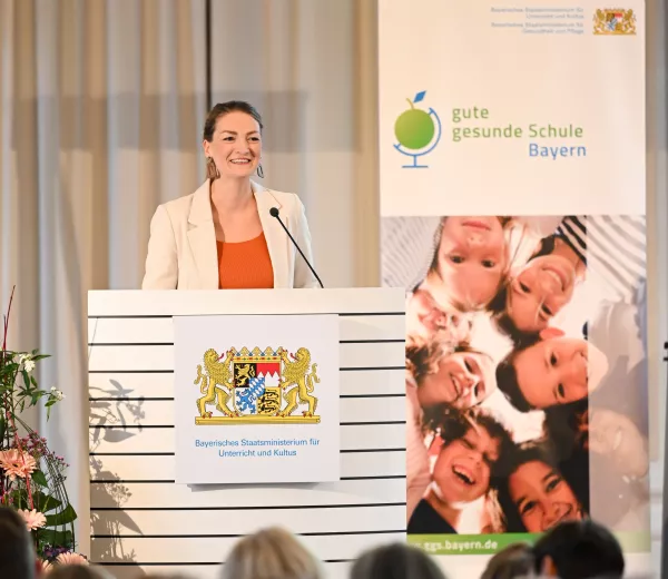 29.11.2023. Kultusministerin Anna Stolz und Gesundheitsministerin Judith Gerlach haben 244 Schulen in der Residenz in München dafür ausgezeichnet, dass sie erfolgreich am „Landesprogramm für die gute gesunde Schule Bayern“ teilgenommen haben. Mehr als 150 Schulen erhielten die Auszeichnung bereits zum wiederholten Mal, darunter das Max-Josef-Stift!