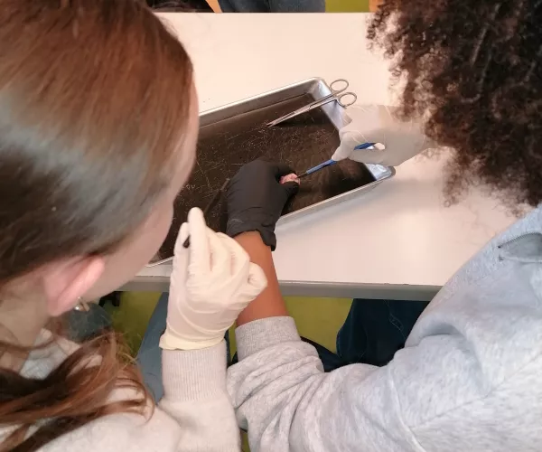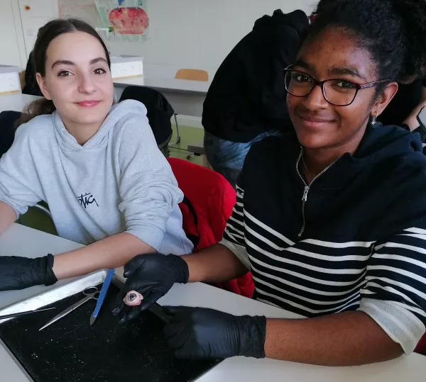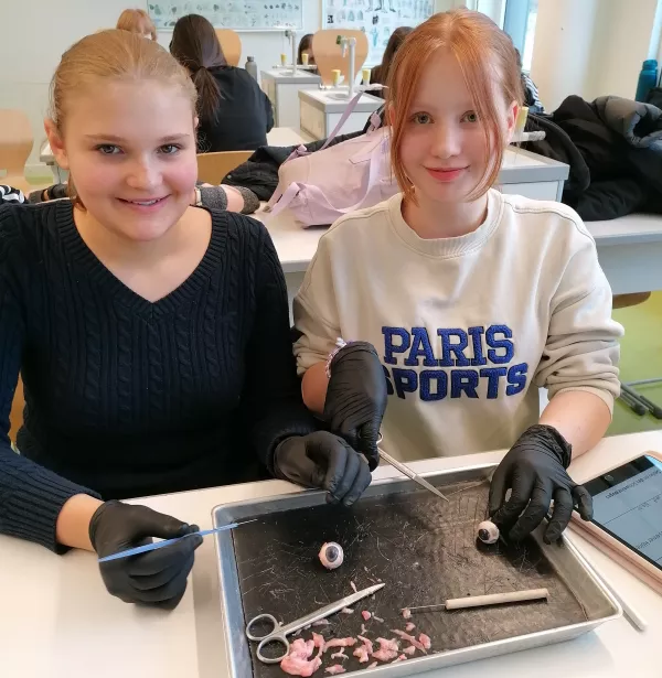 Das Schweineauge ähnelt dem menschlichen Auge in vielerlei Hinsicht und bot den Schülerinnen so einen eindrucksvollen Einblick in den Aufbau und die Funktion dieses komplexen Organs. Mit Handschuhen, Skalpell und Schere erkundeten sie Hornhaut, Linse, Netzhaut und vieles mehr. Ein Unterrichtserlebnis, das Augen öffnet – im wahrsten Sinne des Wortes!