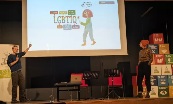 Am Montag, den 15.01.2024 hatten die Schülerinnen der 8. Jahrgangsstufe des Gymnasiums Max-Josef-Stift eine besondere Gelegenheit, ihre Perspektiven zu erweitern und sich mit dem Thema Vielfalt auseinanderzusetzen. Die beiden Autoren Julian Wenzel und Linda Becker, bekannt für ihr preisgekröntes Buch "Was ist eigentlich dieses LGBTIQ*?", besuchten unsere Schule, um eine Lesung zu halten und mit den Schülerinnen über die Bedeutung des Begriffes LGBTIQ* sowie damit verbundene Inhalte zu sprechen.