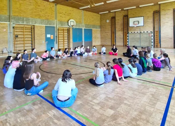 Einen Tag zuvor hatten wir bereits die besondere Gelegenheit, gemeinsam mit der 6c an einem Workshop mit einer Tanzpädagogin des Bayerischen Staatsballetts teilzunehmen. In diesem spannenden Format setzten wir uns kreativ mit dem Stück Onegin auseinander und lernten, Tanz neu zu interpretieren. Die Schülerinnen konnten eigene Bewegungen ausprobieren und sich auf ganz persönliche Weise mit dem Thema auseinandersetzen – ein intensiver und inspirierender Einstieg in die Welt des Balletts.