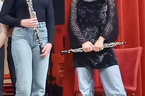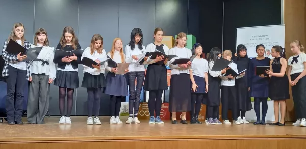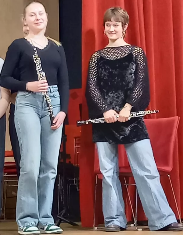 Ein abwechslungsreiches und vielfältiges Konzert zur "Blauen Stunde" durften die Zuhörer am 22.4.2024 in der Aula des MJS erleben. Viele wunderbare Musikerinnen am Piano (Chopin-Ballade F-Dur op 38, Brahms-Intermezzo op 118 No 6), Violine oder Cello, aber auch Instrumente, die bei uns selten vertreten sind, wie z.B. Horn oder ein Konzert von Vivaldi für zwei Oboen waren zu hören. Der Unterstufenchor rahmte das Konzert ein.