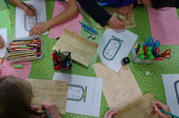Geschichte – das ist mehr als nur lange Texte in verstaubten Büchern! Deshalb hat sich die Klasse 6a am 10.01.2024 auf den Weg in das Staatliche Museum Ägyptischer Kunst gemacht. Dort sind die Schülerinnen dem Geheimnis der Hieroglyphen auf den Grund gegangen. Eine spannende Führung hat anhand von Schreibutensilien, Papyrusresten und Inschriften Licht ins Dunkel der „heiligen Zeichen“ aus dem alten Ägypten gebracht. Anschließend konnten sich die Schülerinnen während eines Workshops erst auf Papier und dann auf Papyrus selbst als Schreiberinnen versuchen und haben mit Präzision und Kreativität auf ganzer Linie überzeugt!