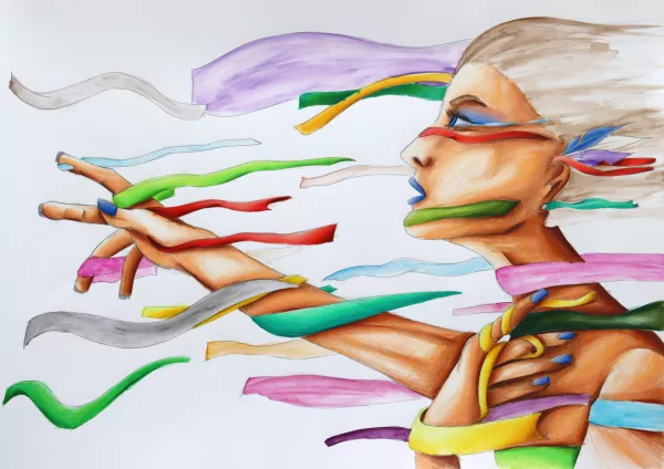 - Tamara lässt sich von Gefühlen und Gedanken inspirieren, zeichnet Vorlagen ab und bearbeitet sie mit Buntstiften zu individuellen, kraftvollen Zeichnungen.