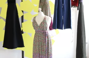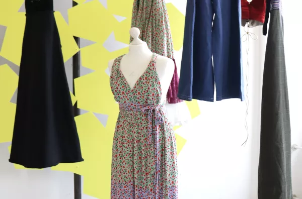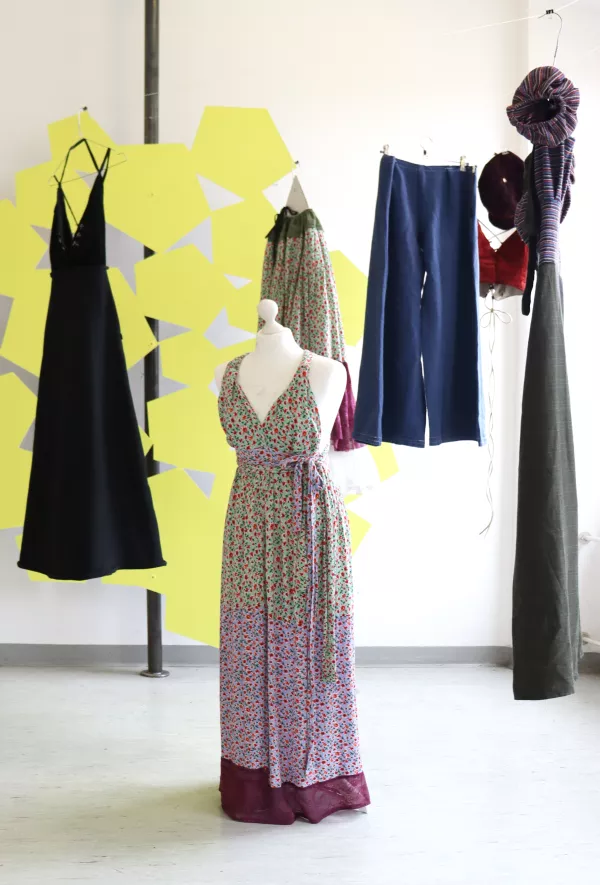 - River entwickelt aus vorhandenen Stoffen und aktuellen Bedürfnissen unterschiedliche Kleidungsstücke, die sie selbst entwirft und näht.