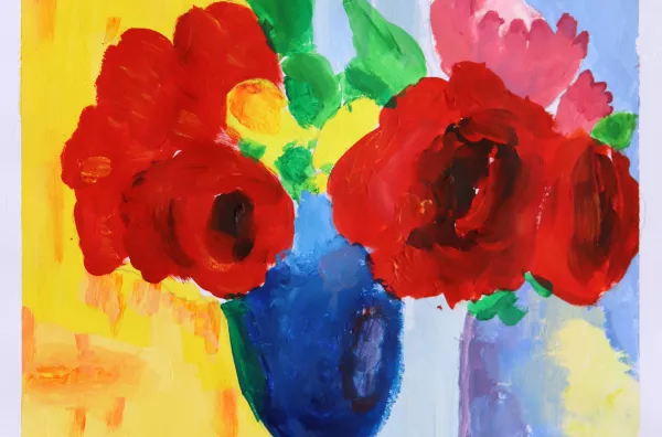 - Sara erforscht die Malerei durch das Malen verschiedener Motive und die Zusammenstellung von Farben.