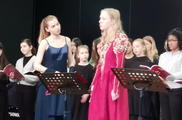 Bewegung, Rührung und viel herrlicher Gesang auf der Bühne unserer Aula - was für ein Erlebnis! Besonderer Dank gilt Isabel Hofmann, die mit viel Einsatz und Engagement dieses unglaubliche Projekt organisiert, einstudiert, dirigiert und auf die Bühne gebracht hat. Der Erlös aus den Eintrittsspenden wurde an das Kulturzentrum GOROD in München überwiesen, wo Kinder aus der Ukraine unterrichtet werden.