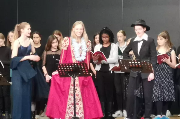 Viele musikalische Talente - vom Unterstufenchor bis zu den Solistinnen der Q12 - standen bei diesem herrlichen Stück auf der Bühne! Nicht nur die Dido und ihre Vertraute Belinda, sondern auch Aeneas, die Hexe(n) und die Seeleute beeindruckten mit Gesang und schauspielerischem Talent, von der ersten Begegnung der Liebenden bis hin zum tragischen Tod der Dido.