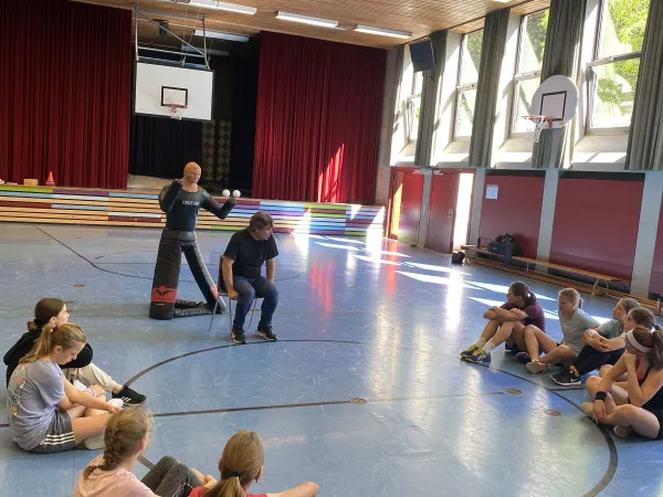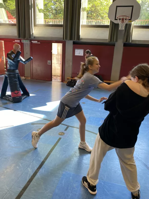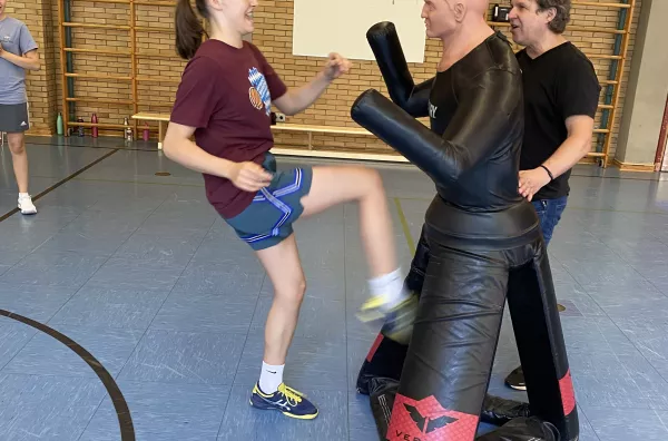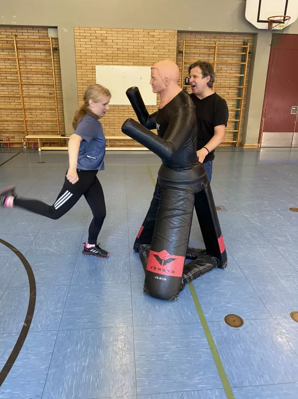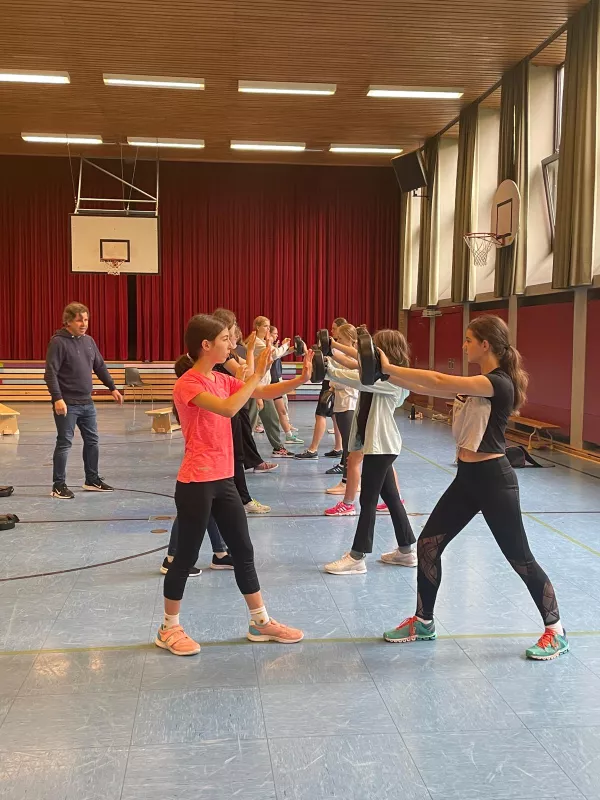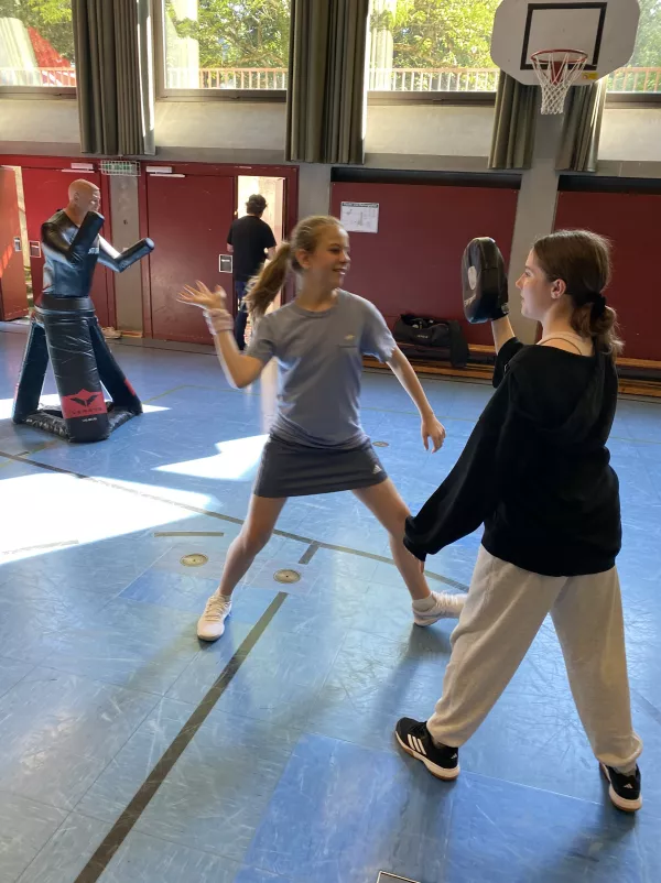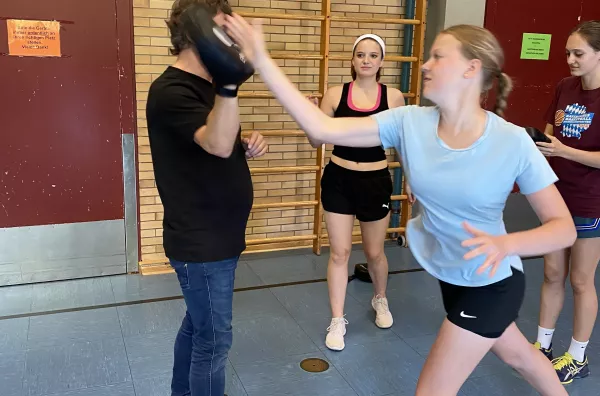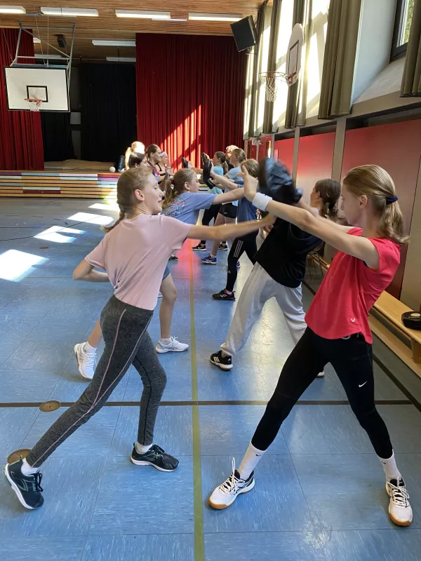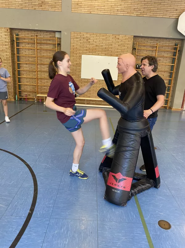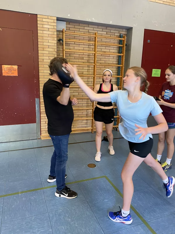 Das Institut für zivile Sicherheit war auch in diesem Schuljahr (08. & 09. Juli 2024) zu Gast am MJS. Der Geschäftsführer, Herr Andreas Ertl, bot wieder für alle Schülerinnen der 8. Jahrgangsstufe einen zweistündigen Workshop zum Thema „Gewaltschutz für Mädchen – sicher unterwegs“ in der unteren Turnhalle an. Hierbei lernten die Schülerinnen theoretische und praktische Inhalte kennen, vor allem, wie man sich in einem Notfall effektiv verteidigen beziehungsweise gefährliche Situationen frühzeitig erkennen kann. An Dummies erprobten sie, wie viel Kraft eigentlich in ihnen steckt. Nach schweißtreibenden Übungen und vielen Anregungen und Tipps, was zu tun ist, wenn es mal wirklich ernst wird, gingen die Mädchen mit frisch gestärktem Selbstbewussten nach Hause.