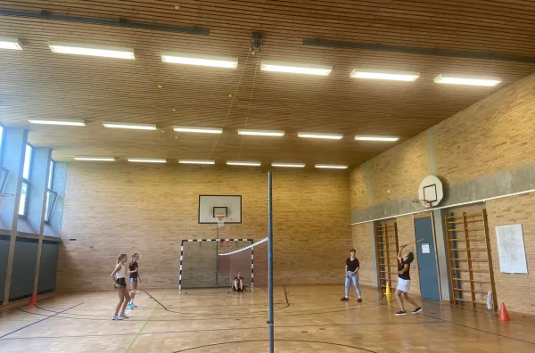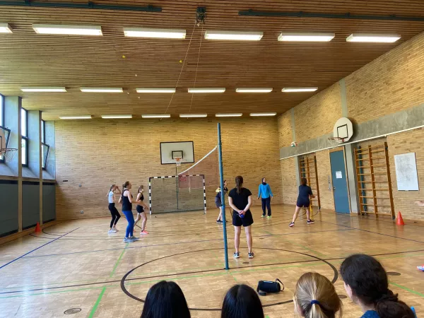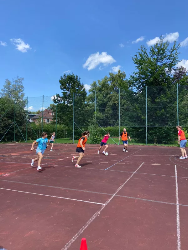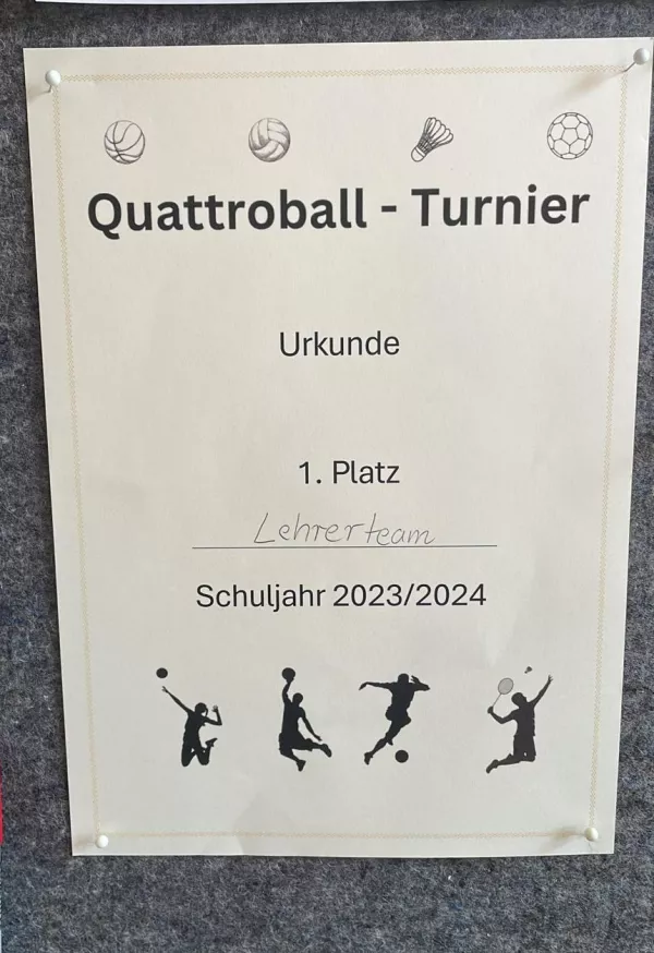 Neben den musikalischen Highlights am Ende des Schuljahres gab es in diesem Jahr auch einen besonderen sportlichen Abschluss. Am Donnerstag vor den Ferien konnten die Schülerinnen sich mit ihren Lehrkräften sportlich bei einem Quattroball-Turnier messen. Herausgefordert werden konnten die Lehrerinnen und Lehrer in den Disziplinen Fußball, Basketball, Volleyball und Badminton.