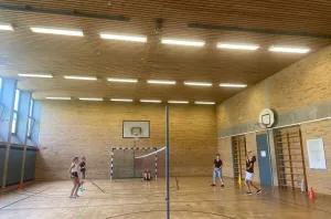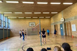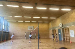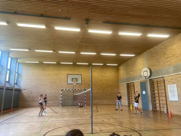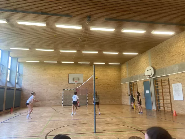 Das Wetter spielte perfekt mit und so konnten die Fußball- und Basketballspiele sogar draußen auf dem Hartplatz ausgetragen werden. Anschließend fanden die Volleyball- und Badmintonspiele in der Sporthalle statt. Alle Teilnehmerinnen und Teilnehmer zeigten großen Einsatz, Teamgeist und Fairness. Das Anfeuern der Spiele trug zu einer tollen Stimmung bei.